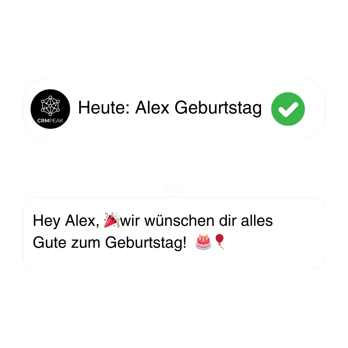 CRMPeak bietet dir die Möglichkeit personalisierte Regeln festzulegen, mit denen du deine Kunden reaktivieren kannst. So kannst du beispielsweise einstellen, dass deine Kontakte zu ihrem Geburtstag automatisch eine Geburtstags-Nachricht von dir erhalten.